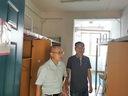 9月8日,统计学院党委书记陶春海、党委副书记黄黑平、学工办主任顾勇等前往2020级新生寝室,就寝室的卫生状况、设备设施、用电安全等情况进行了检查。