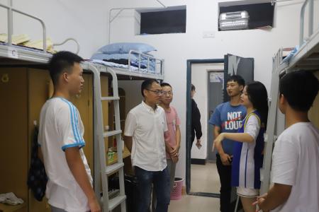 9月13日下午,统计学院迎新工作已基本进入尾声,学院党委书记陶春海在各班助班的陪同下走访2020级新生寝室,与新生进行了亲切的交谈。
