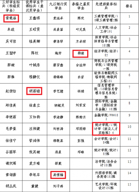 “雄关漫道真如铁,而今迈步从头越”,学生奖学金评选通过展现踏实刻苦、勤奋钻研、努力创新的榜样力量,激励着江财青年不断奋进。相信今后会有更多的统院学子不忘初心、牢记使命,再接再厉、超越自我,不断开拓、砥砺前行!