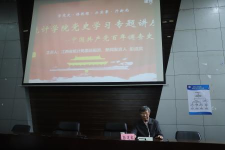 4月21日下午,统计学院举办党史学习教育专题讲座第四讲。江西省统计局原巡视员、新闻发言人彭道宾应邀主讲,统计学院党委书记陶春海、党委副书记黄黑平和学院200余名入党积极分子聆听了此次讲座。