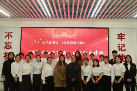 在雄壮的国歌声中,“悦享经典红色读书会”活动正式开始,此次活动分为三个篇章,第一篇章“悦读经典,读善其身”,主要由经典再现《红星照耀中国》视频解说、经典诵读《红星照耀中国》(节选)、经典分享优秀党员事迹组成;第二篇章“红心向党,永葆初心”,主要通过“我来抢答”党史知识竞赛、“你画我猜”党史知识呈现组成;第三篇章“乘风破浪,扬帆起航”主要由经典传唱、红歌合唱组成。