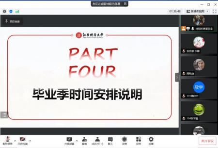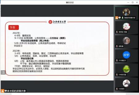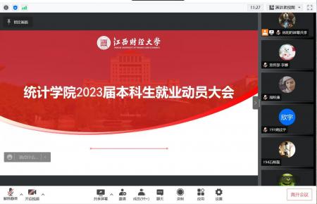 4月13日晚,统计学院通过腾讯会议召开了2023届本科毕业生考研及就业动员大会,分析当前考研及就业形势,通报当前考研及就业进展情况,指导2023届毕业生树立正确考研及就业观,科学选择考研目标院校及就业单位。统计学院首席教授罗良清、院长平卫英、院党委书记陶春海、副院长郭露、刘小惠和19级本科、21级二学位班主任及就业专员出席会议,学院2023届全体本科、二学位毕业生参加会议。会议由院党委副书记黄黑平主持。