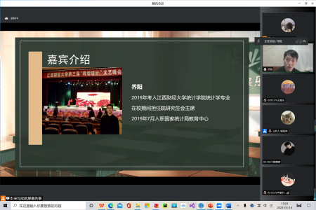 5月14日下午,统计学院于线上举办了优秀毕业生分享会。此次分享会邀请到2019届统计学院优秀毕业生代表乔阳为同学们分享他在学习与工作中的经验与心得。