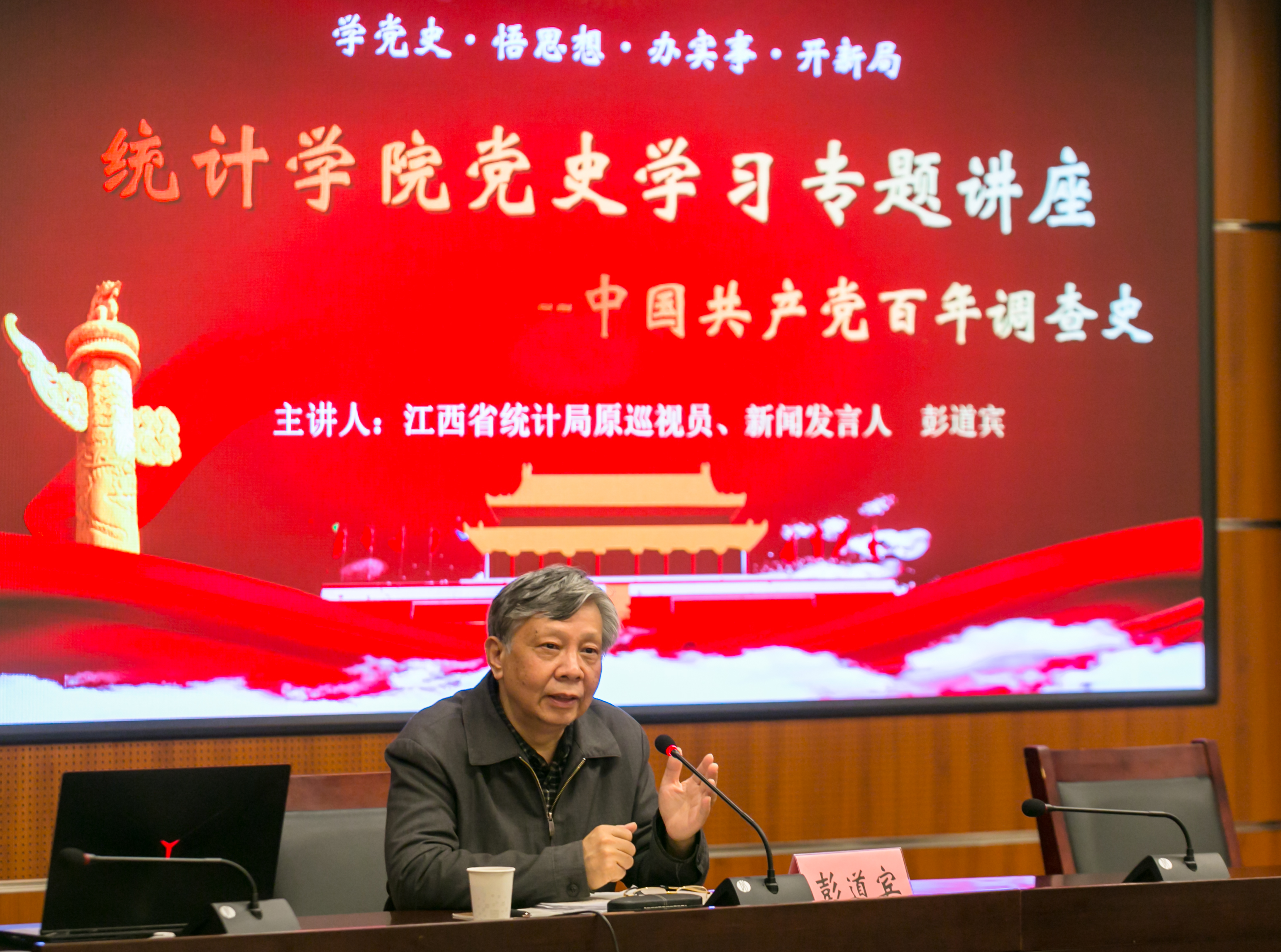 ▲彭道宾教授为统计学院师生讲授中国共产党百年调查史