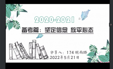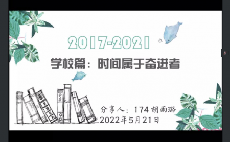 521日下午,统计学院于线上举办第二期优秀毕业生分享会活动。本次分享会邀请到了2021届优秀毕业生胡雨璐为同学们分享她四年来在学习与工作中的经验心得。