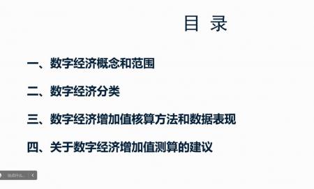 随后,许宪春教授从三个方面展开此次讲座的核心内容。第一部分为数字经济概念和范围。该部分主要讲解OECD、美国经济分析局、国际国币基金组织、G20杭州峰会、中国国家统计局、《“十四五”数字经济发展规划》、中国通信院等七个方面对数字经济概念和范围的定义。第二部分为数字经济分类。该部分主要讲解OECD数字经济产业分类、美国经济分析局数字经济产业分类以及中国国家统计局制定的数字经济及其核心产业分类。第三部分为数字经济增加值测算方法和数据表现。许宪春教授提出数字经济增加值核算已经引起许多国际组织、一些国家政府统计机构、研究机构和学者的重视。各方面对数字经济增加值的测度方法和测算成果差异较大。