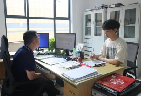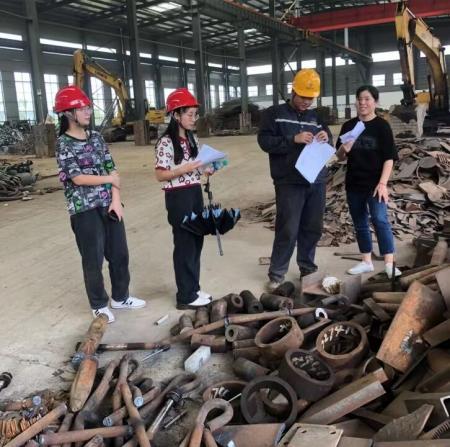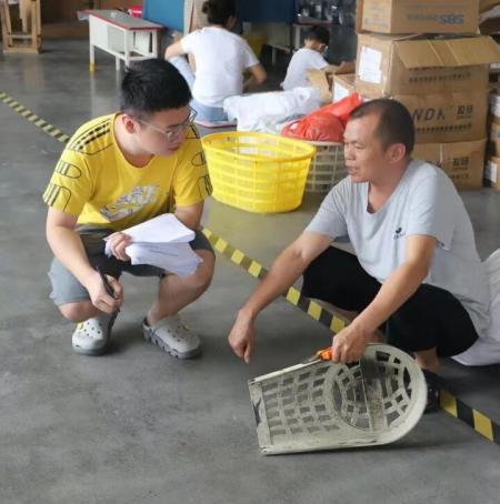 图为江西财经大学统计学院学子聂曦对永盛泰新材料(江西)有限公司进行调研。