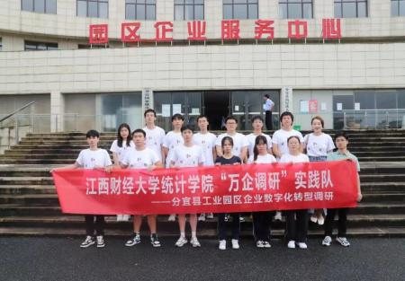 图为江西财经大学统计学院学子到分宜县工业园区进行调研,并合照。