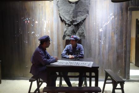 在九龙山陈列馆内,同学们认真聆听讲解员介绍发生在这片红土地上的红色故事。在沉浸式剧场中,同学们换上特定人物服饰,通过剧本阅读、剧情演绎等方式重温九龙山革命故事。通过演绎红色故事,他们深刻体会到了先烈们抛头颅、洒热血的革命精神和爱党爱国的情怀。
