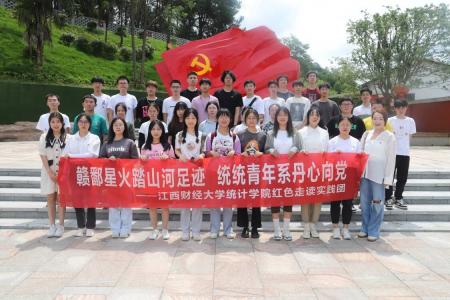 图为江西财经大学统计学院学子到九龙山革命斗争陈列馆进行参观学习,并合照。