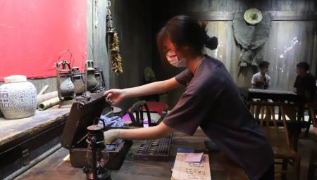 图为江西财经大学统计学院学子在九龙山革命斗争陈列馆进行沉浸式红色剧本演绎。