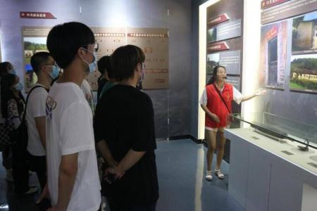 图为江西财经大学统计学院学子在九龙山革命斗争陈列馆听讲解员介绍花桥支部旧址的故事。