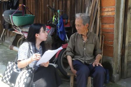 在沙陂村,同学们在村内进行调研,他们礼貌地邀请村民填写问卷,并进行询问交流。在与一位92岁高龄的老人家进行交谈的过程中,同学们了解到,老人的家庭生活条件比较困难,村里帮助他缴纳了城乡居民基本医疗保险,很大程度地减轻了老人的经济负担和心中压力,也进一步确保了城乡居民医疗保险的全覆盖。