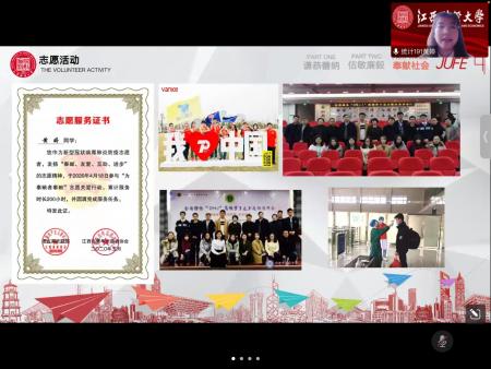 4月27日下午,统计学院于线上举办了江西财经大学第十八届“自强之星”打擂活动,本次打擂活动由10位参赛者竞争,院党委书记陶春海、院党委副书记黄黑平、辅导员钟晴、林阳担任主评委,并有11位同学担任大众评委。