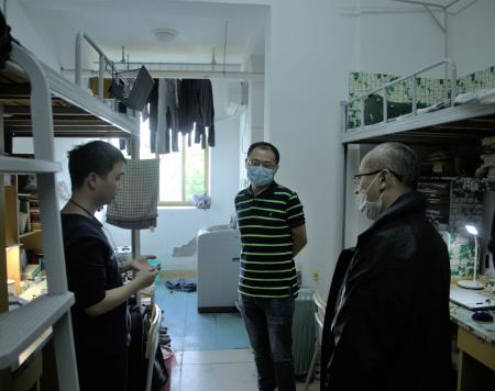 5月4日下午,统计学院党委书记陶春海、党委副书记黄黑平走访学生宿舍,深入学生宿舍了解同学们日常生活情况。